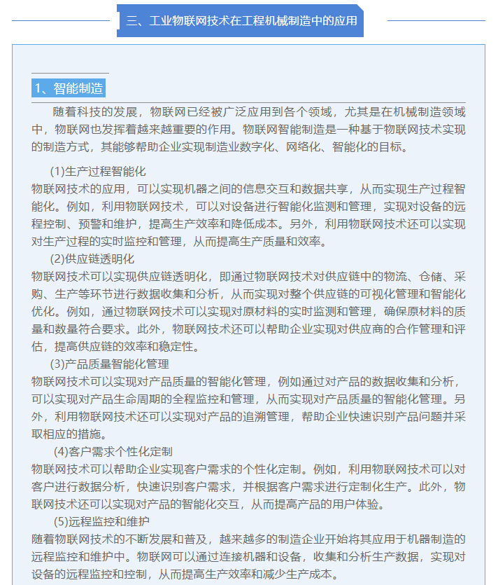 工业物联网技术在工程机械制造行业的应用